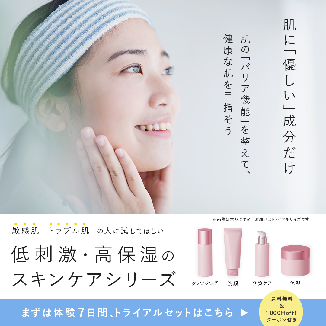 3枚目のバナーは、人物写真とキャッチコピーによって、ブランドのメッセージや、安心・安全な成分、使用後の心地よさを演出。